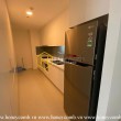 The tall and wide glass panels not only help the room always be bright and harmonize with the sun and wind, but also highlight the basic furniture such as: white sofa, black tea table with wooden materials,.. .