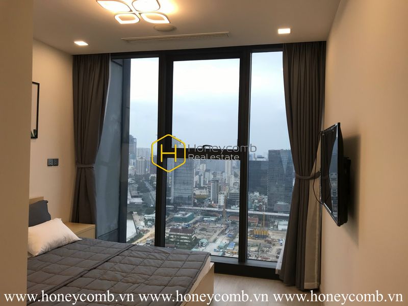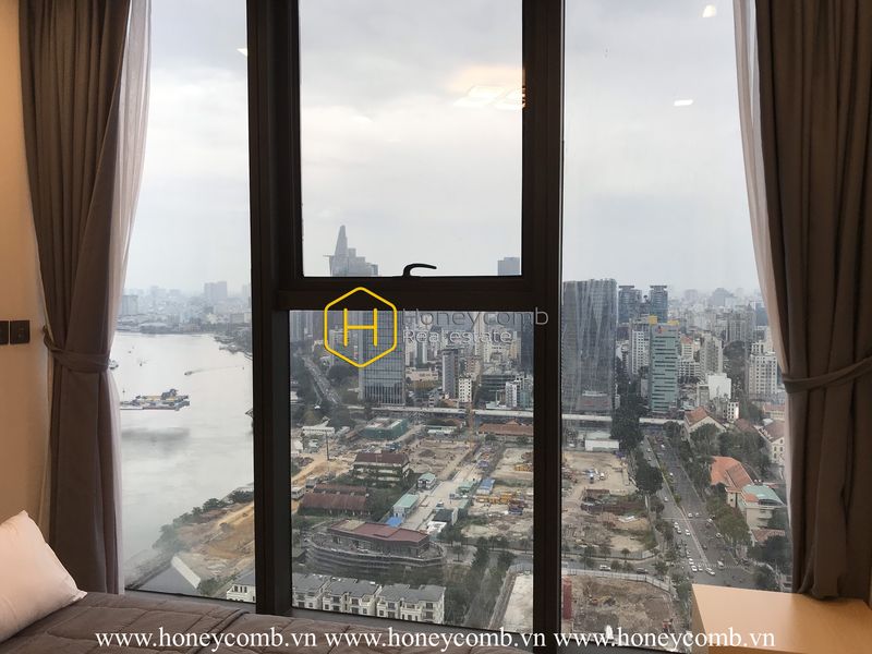 The deep and warm tones, together with the pictures and beautiful city views make the space not only luxurious, but also elegant and not monotonous.
