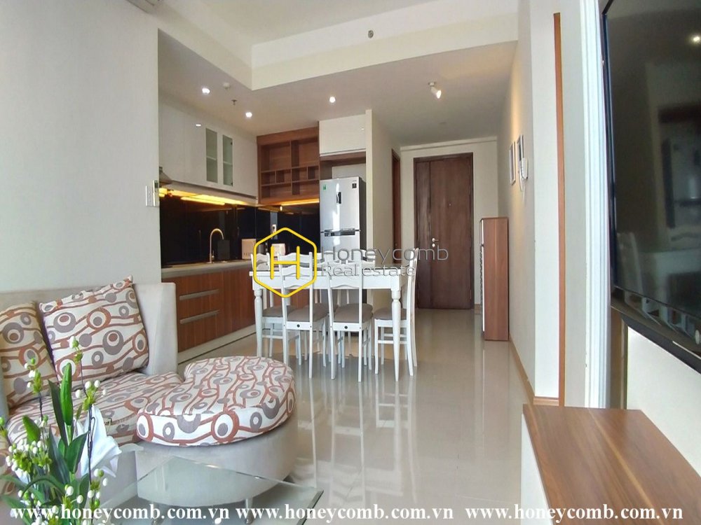 The apartment features two bedrooms and two bathrooms, with a spacious living room and fully-equipped kitchen. Enjoy the tranquil sounds of nature from your private balcony, perfect for relaxing after a long day. The building also offers luxury amenities such as an outdoor pool, sauna, gym and more.