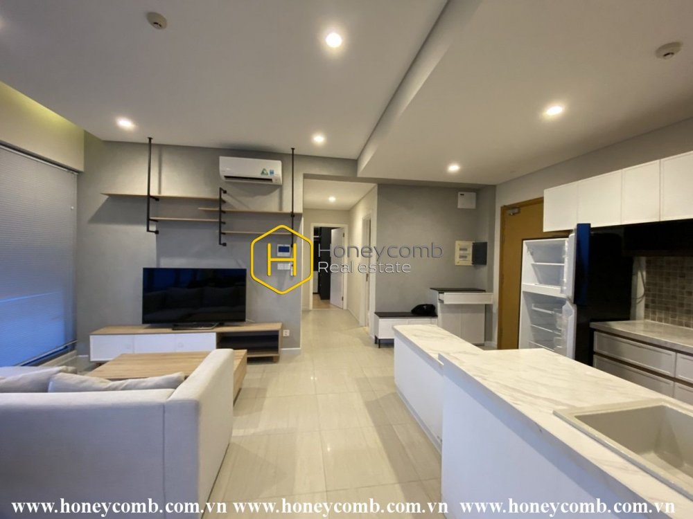 A contemporary and artistic apartment that is beautifully decorated with classy materials and furnishings.