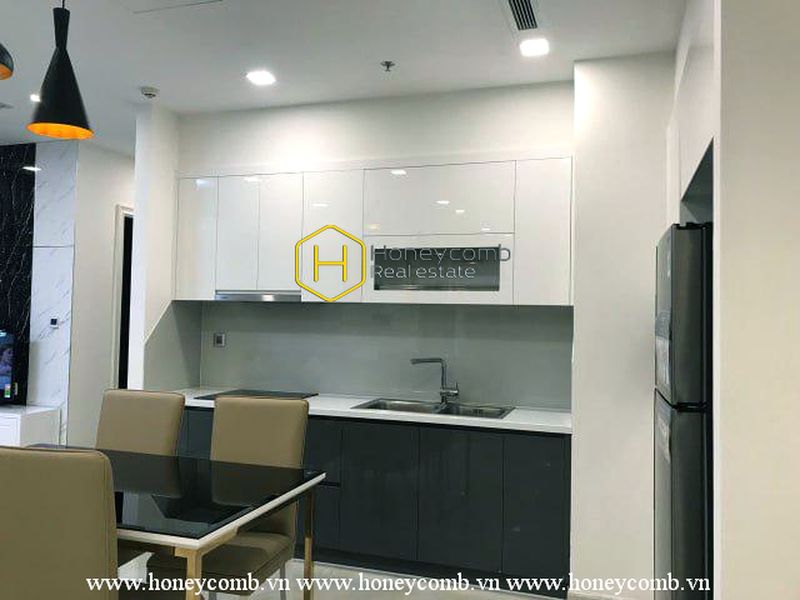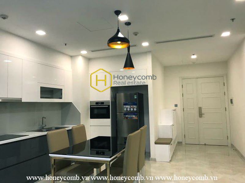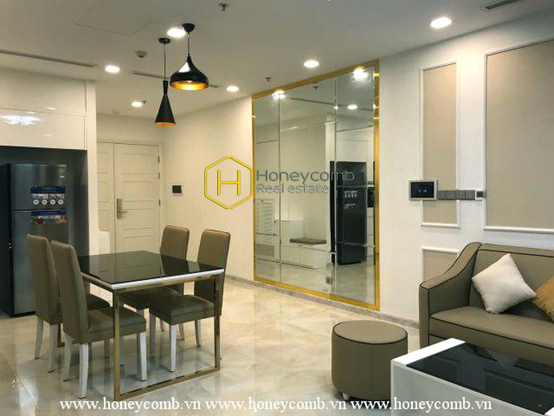 Situated in high-class residential area Vinhomes Golden River, this apartment owns modern design that perfectly matches with moderate light theme and wooden stylish furniture.