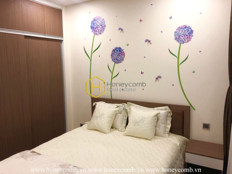 Ở phòng ngủ tranh vẽ lại là những nhành hoa tạo nên sự duyên dáng để nhẹ nhàng đưa bạn vào giấc ngủ.