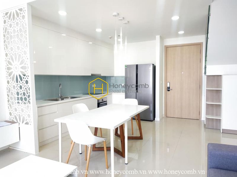 Mang phong cách kiến trúc hiện đại, căn hộ này gây ấn tượng với thiết kế đơn giản nhưng sang trọng. Tông màu trắng chủ đạo mở ra không gian thoáng đãng với bố cục rõ ràng, đường nét mềm mại, sắc nét tạo nên tổng thể hài hòa. Một không gian sống hấp dẫn và thú vị.