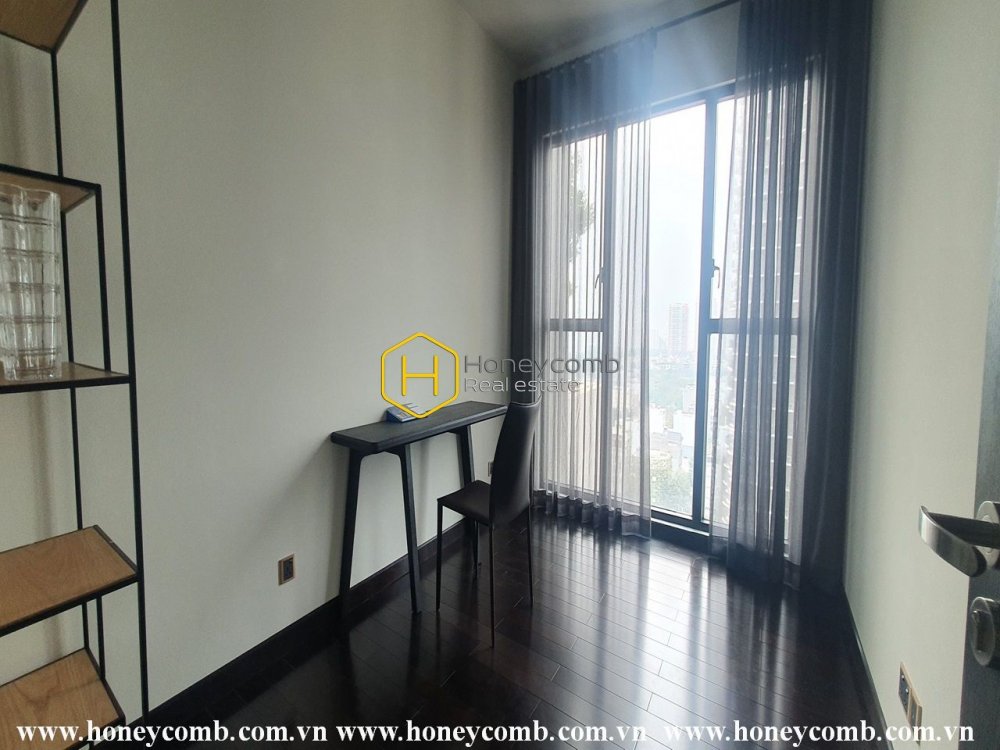Căn hộ này mở ra một không gian hiện đại với tông màu trầm ấm. Không gian thoáng đãng điểm tô cho sự nhẹ nhàng đầy thanh lịch.