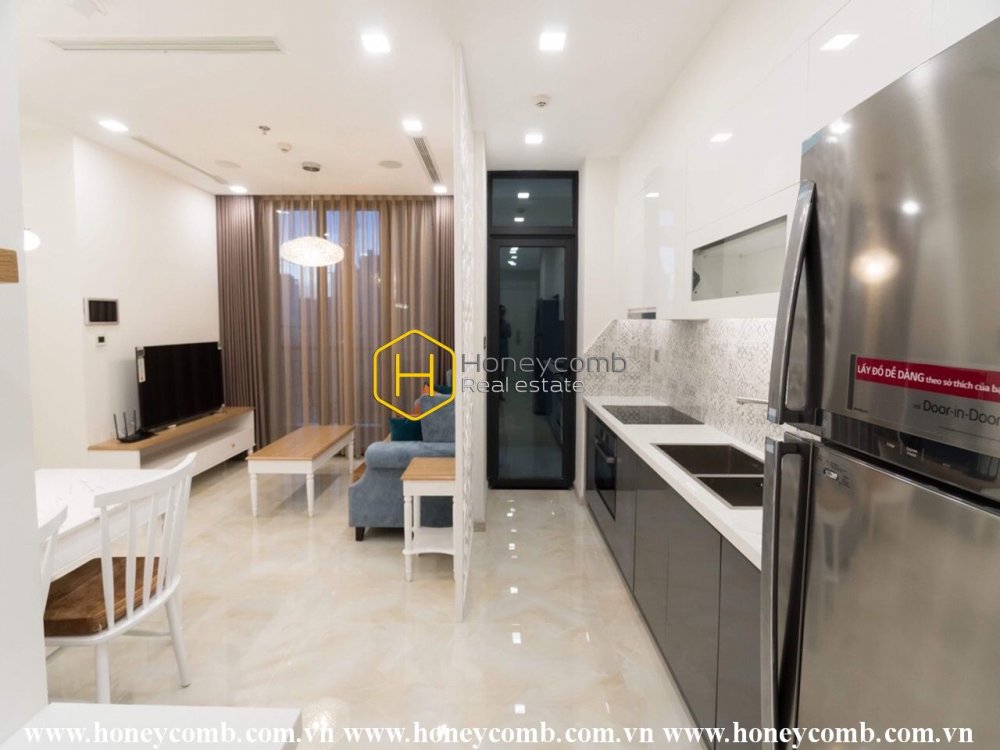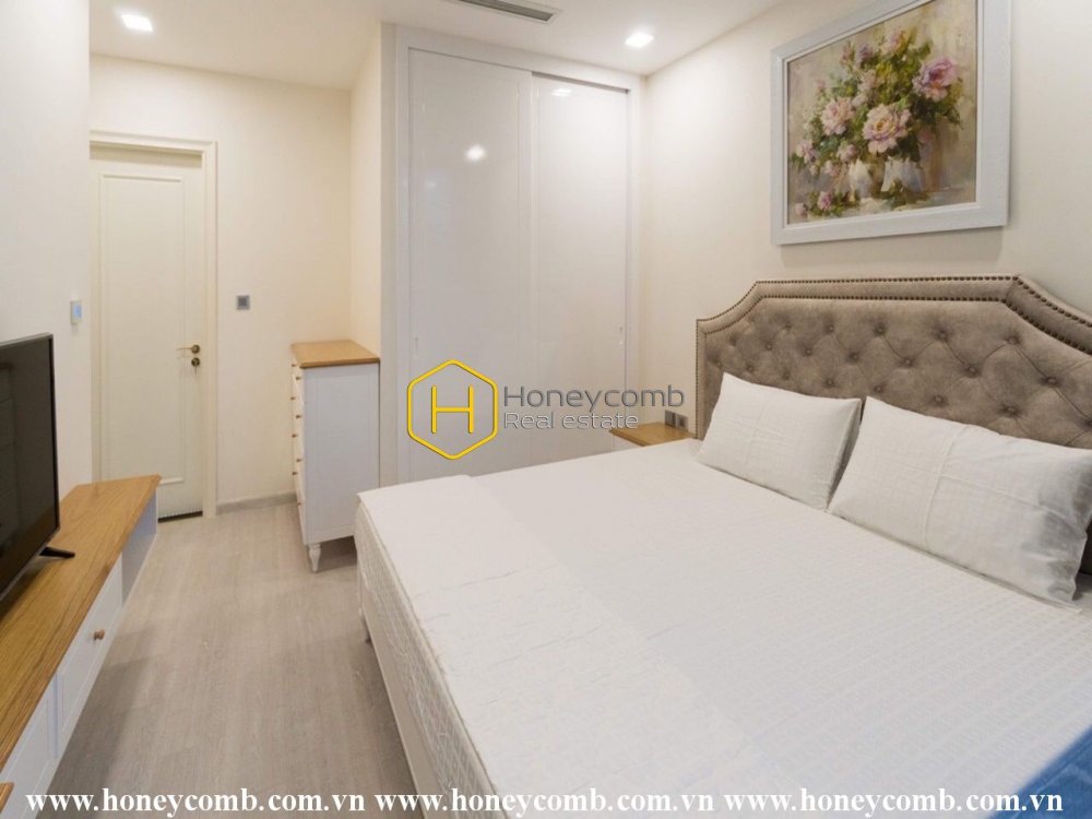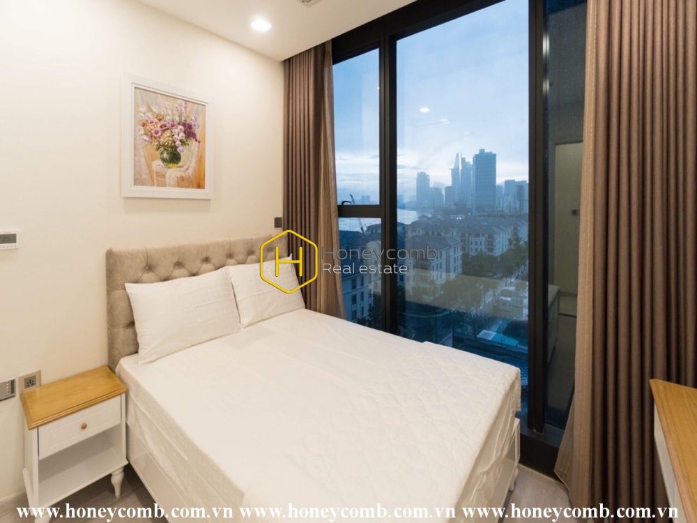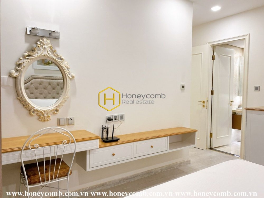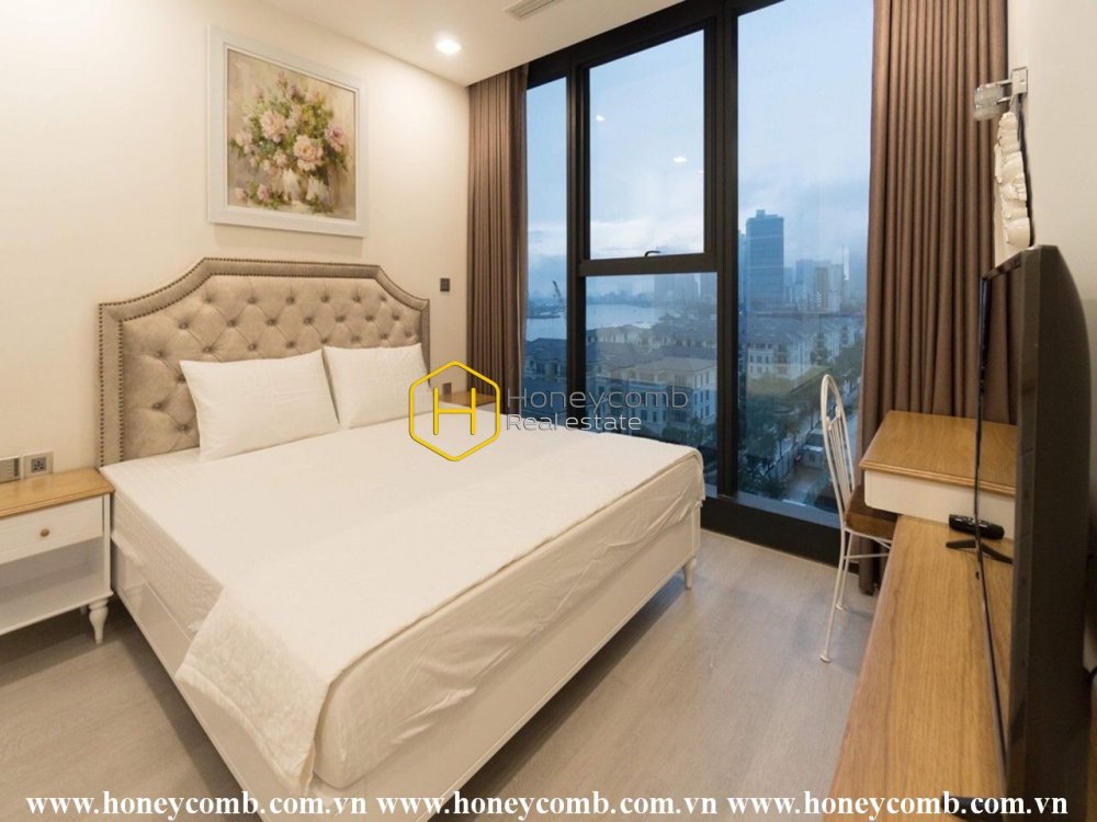 Cảm nhận sự thanh tao của sắc trắng tinh khiết trong căn hộ lộng lẫy cho thuê này tại Vinhomes Golden River