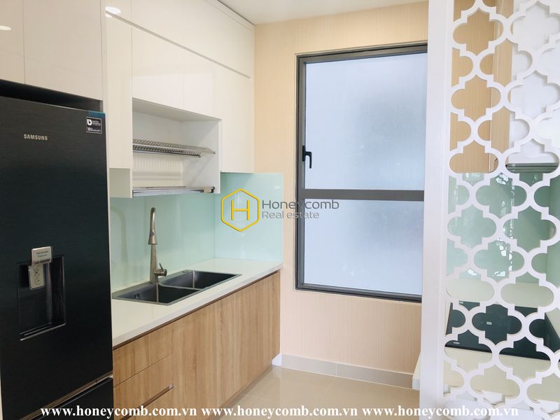 Căn hộ The Sun Avenue này tạo ra một thẩm mỹ gắn kết và ấm áp.