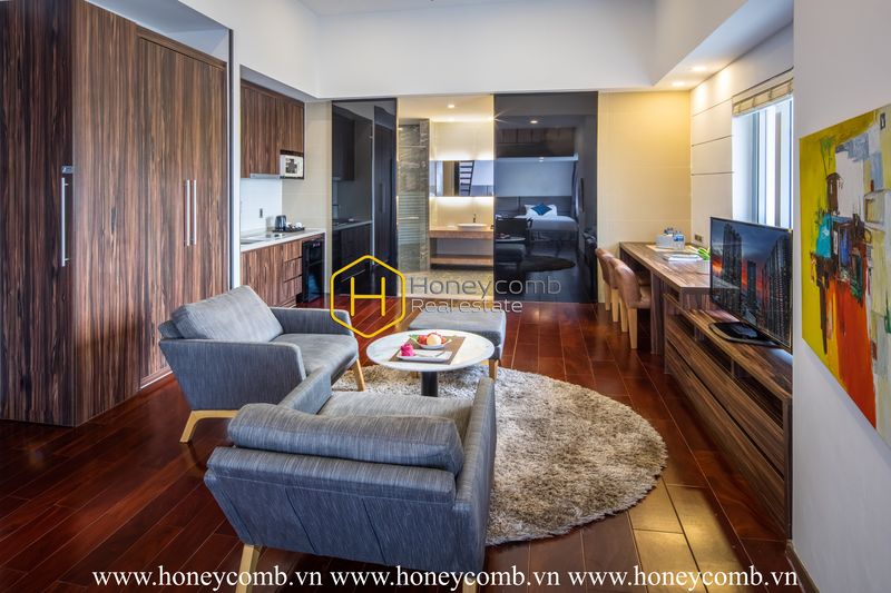 Căn hộ này hiếm khi có sẵn! Căn hộ dịch vụ này có nội thất bằng gỗ đầy tinh tế lấy cảm hứng từ phong cách đô thị kết hợp với hệ thống ánh sáng màu vàng chắc chắn khiến ngôi nhà này trở thành nơi ấm áp mà bạn muốn quay về nhất. Hơn nữa, với vị trí đắc sẽ giúp bạn tiết kiệm thời gian di chuyển vào trung tâm hay bất kỳ nơi nào trong thành phố.